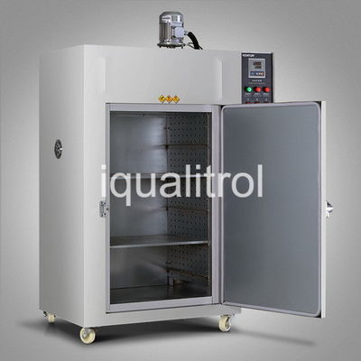 The top of the chamber is equipped with an electric heat element and an air fan; when they are working, it is heated by an electric heat element and air circulation through the fan blower to achieve drying effect; the temperature PID control can ensure temperature uniformity.